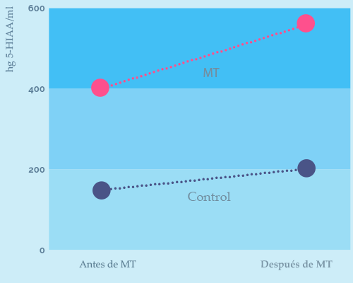 Cambio en los niveles de serotonina durante la práctica de la MT