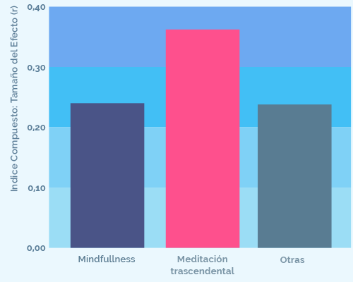 Meta análisis de cambios beneficos en la ansiedad, emociones negativas y neurosos , cuando comparamos la MT con Mindulness y otros tipos de meditación.